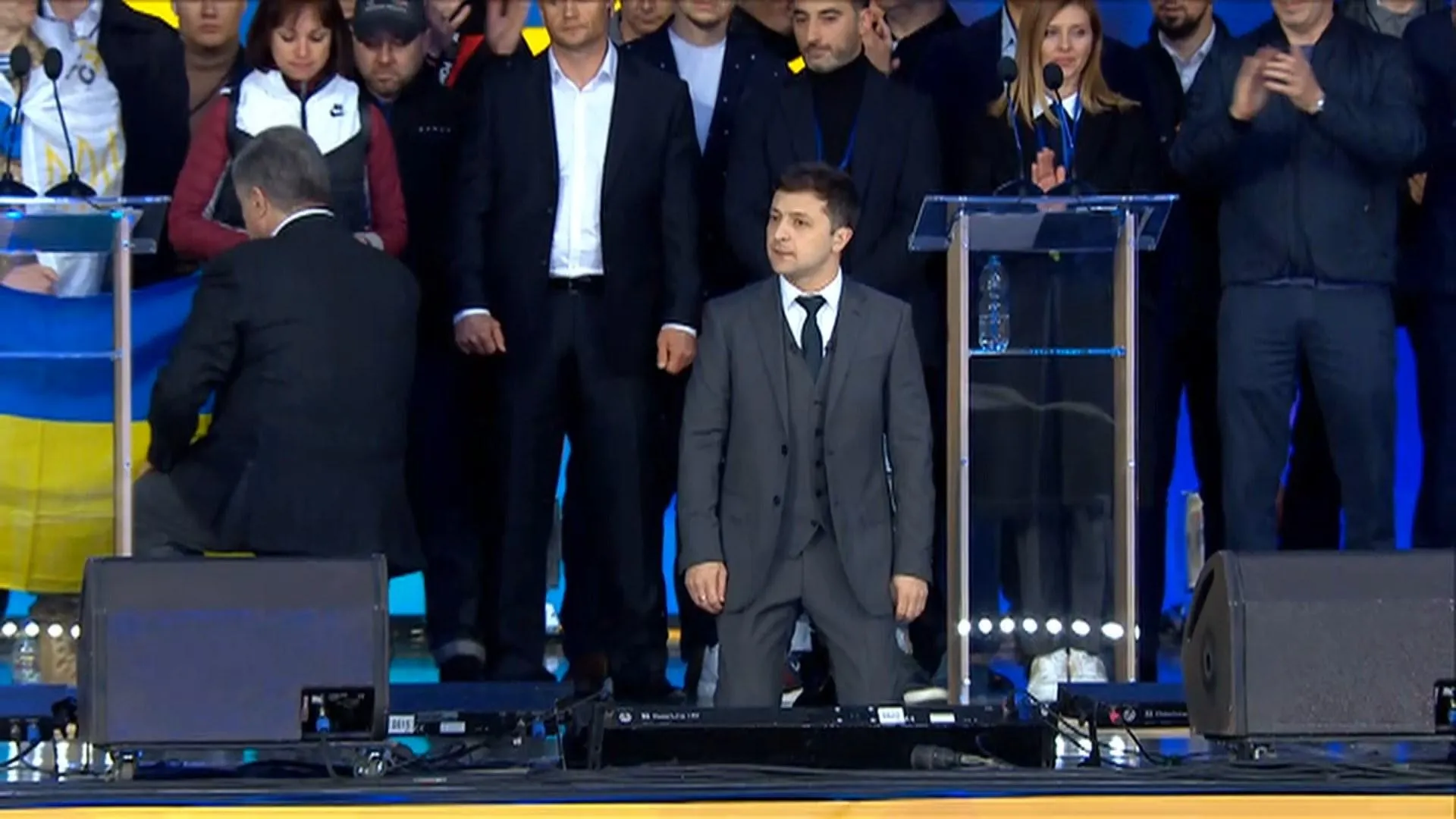 Володимир Зеленський та Петро Порошенко стали на коліна під час дебатів