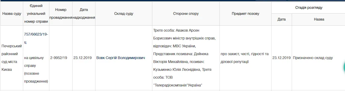 Кузьменко судитиметься з Аваковим / скріншот з court.gov.ua