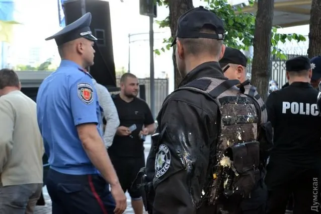 Однак поліція їм у цьому завадила, активістів відтіснили через, що дісталось і правоохоронцям — у них поцілили кілька яєць.