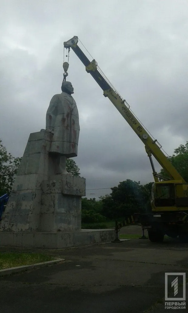 Поки що за допомогою баштового крана монумент розбирають на сім складових блоків.