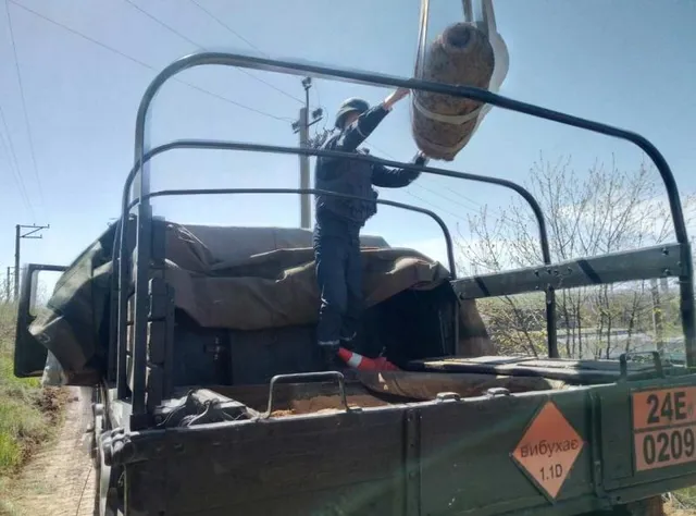 Рятувальники з використанням автокрану безпечно вилучили і завантажили боєприпас в спеціально обладнаний автомобіль "ГАЗ-66". З дотриманням усіх заходів безпеки небезпечна знахідка була транспортована та о 19:50 знешкоджена шляхом підриву в заздалегідь визначеному кар’єрі за межами с. Великодолинське,