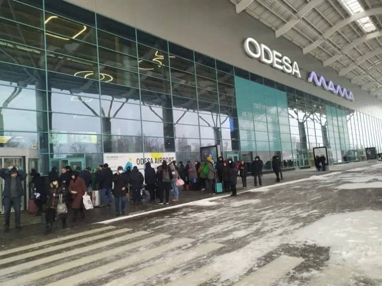 Люди чекають біля будівлі летовища / Фото телеграму "Одесса сейчас"