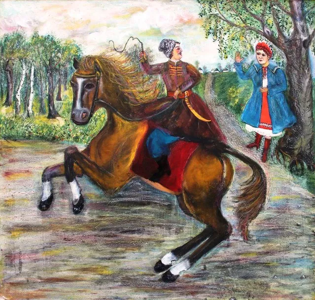 Олені Рибальченко 88 років. Хоч в роду були художники, сама за пензля взялася вже на пенсії. Якось під час ремонту вирішила розписати стіну у квартирі. Згодом взялася і за двері.