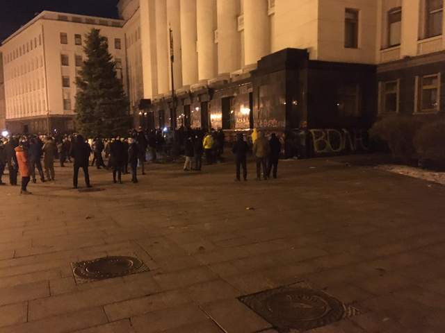 - Прихильники Стерненка зібралися о 19:00. Вони запалили фаєри та димові шашки. Крім того, біля будівлі ОП випустили феєрверки.