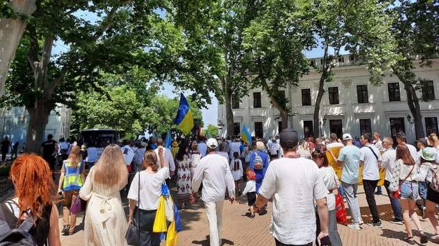 Учасники мегамаршу пройшли з вулиці Дерибасівська до Одеської міськради. Зокрема, їхній маршрут пролягав вулицями Рішельєвська, Ланжеронівська та Пушкінська.