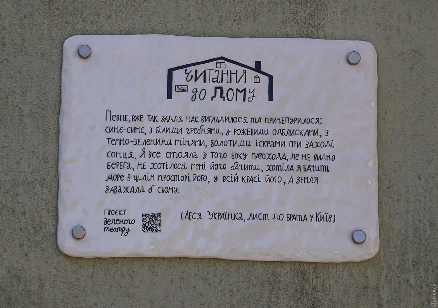 Табличка з цитатою Лесі Українки, яку повісили в Одесі / Фото "Думская"