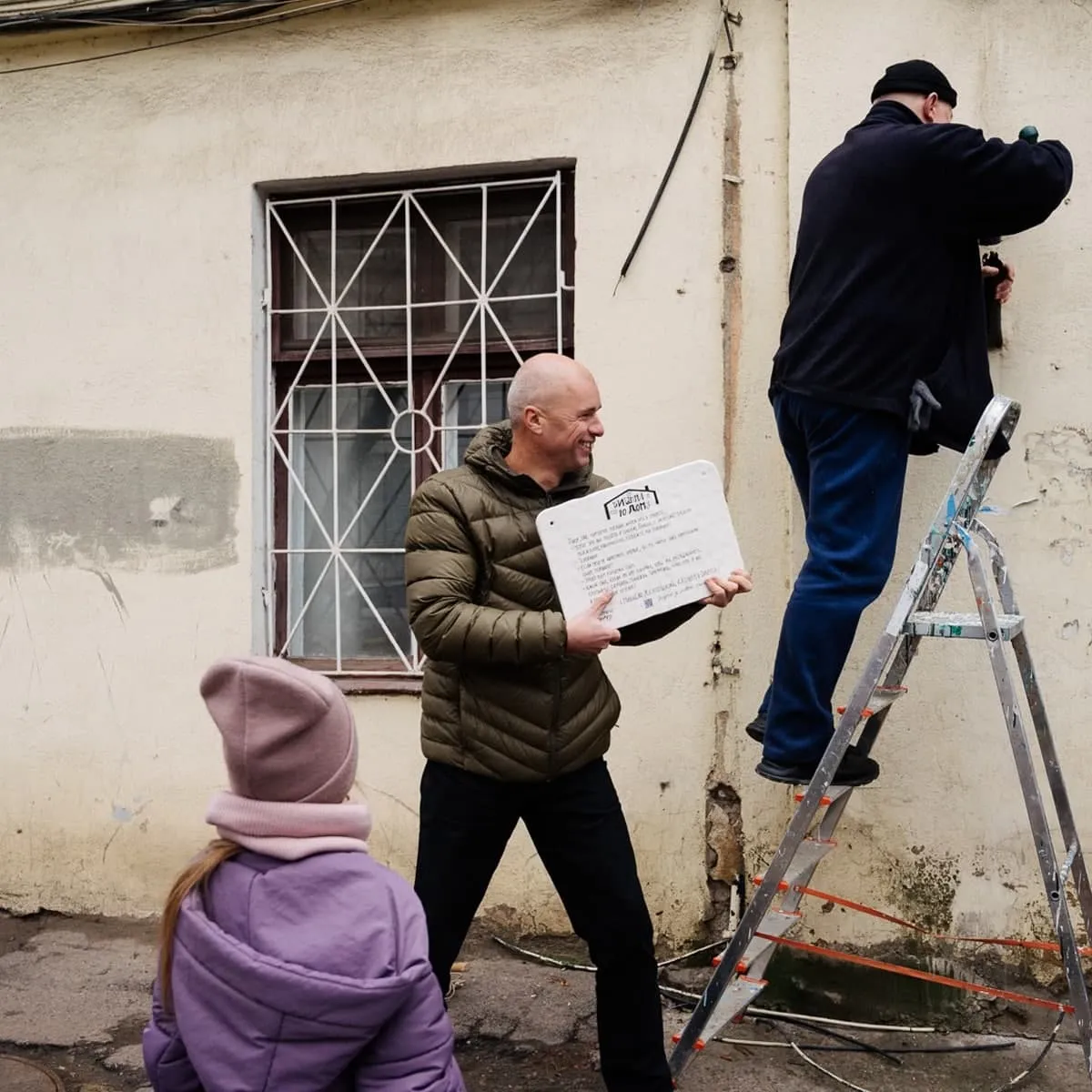 Активісти "Читання до дому" прикріпляють цитату Лесі Українки / Фото телеграм-каналу "Одеса сьогодні"