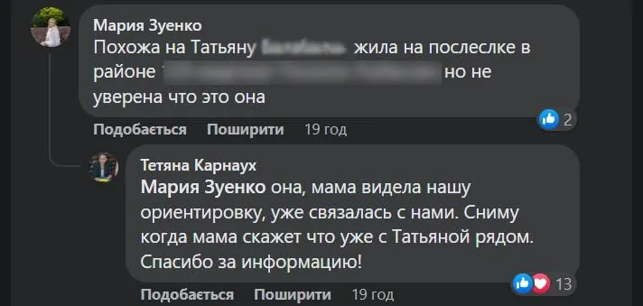 Згодом у коментарях люди написали ймовірне ім'я дівчини. Воно виявилося правильним і завдяки цьому вдалося відшукати родичів.