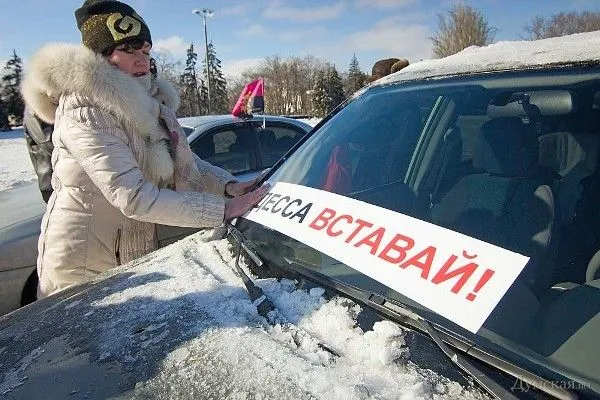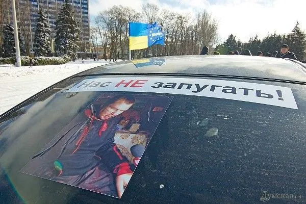 Активісти прикрасили свої автомобілі державними прапорами України, символікою Євросоюзу, а також наклейками "Одеса, вставай!" і "Нас не залякати!".