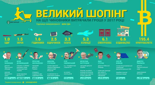 Найбільше з-поміж усіх на біткойни витратився депутат Одеської міської ради Дмитро Палпатін. 1 серпня він придбав 7711 одиниць біткоїн кешу, які на момент купівлі коштували майже 58 млн гривень.