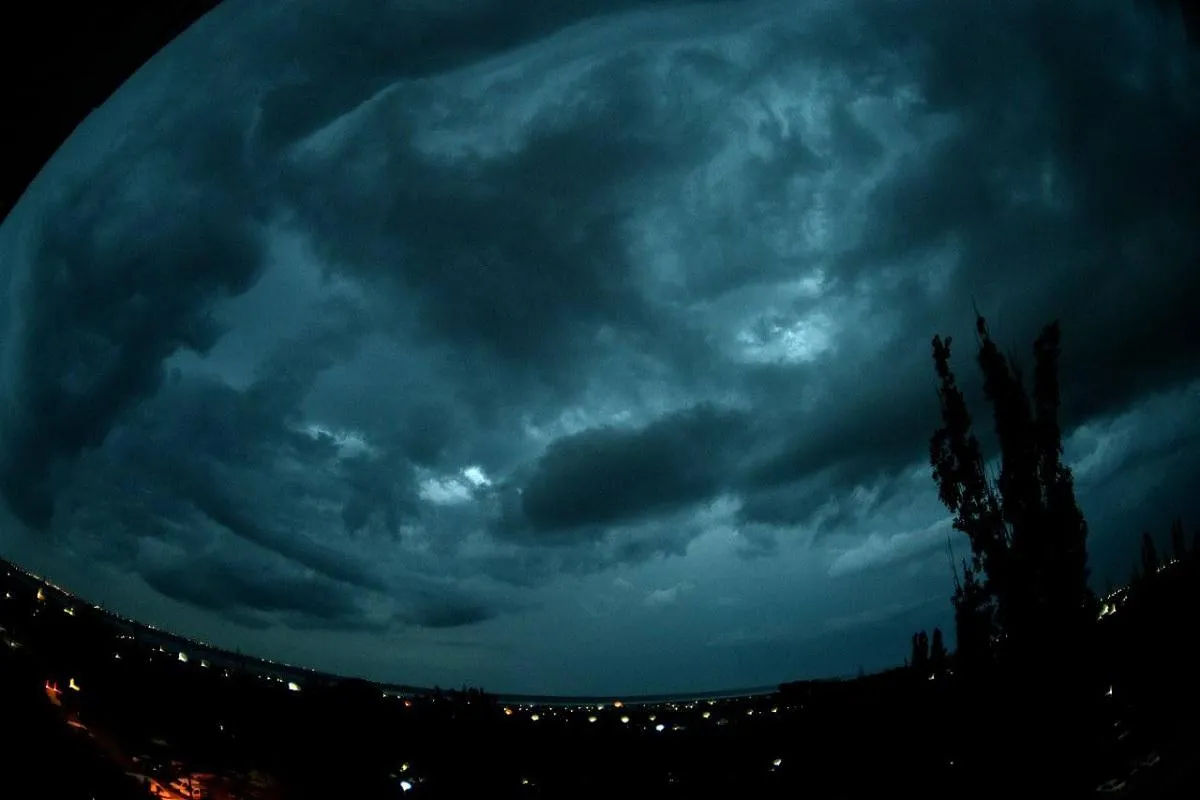 На знімках та відео видно, що небо набрало яскраво-блакитного та бірюзового забарвлення, а згодом почорніло. Періодично його підсвічують блискавки, долинають також звуки грому. Наразі дощ не йде, однак місцеві жителі зазначають, що насувається ураган.