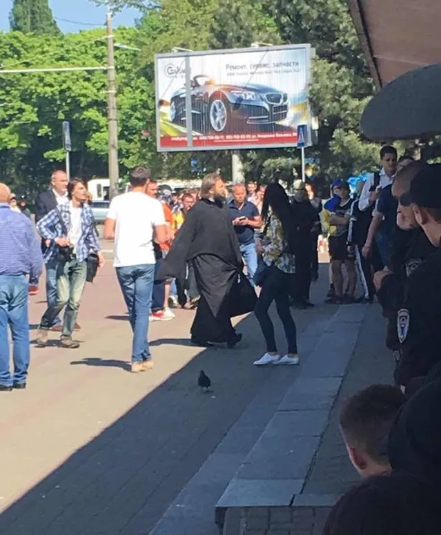 На фото також видно, як до одного з входів в аеропорт прямує чоловік, одягнений у рясу.
