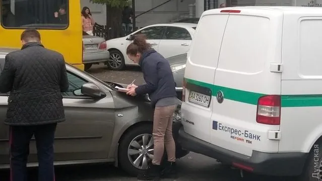 Приблизно опівдні 2 листопада на Польському спуску автомобіль марки Citroen врізався з мікроавтобус інкасаторів, пише "Думская".