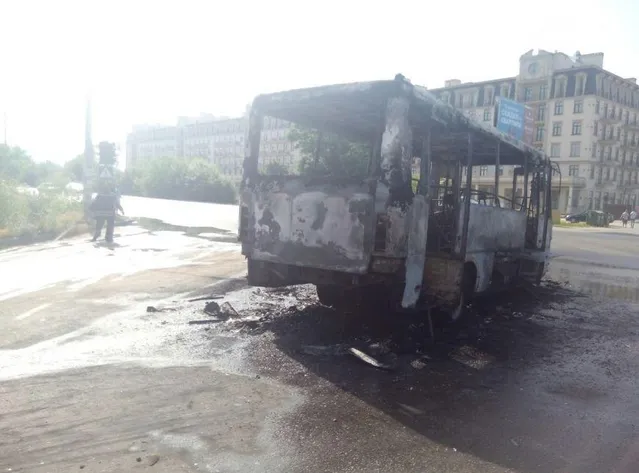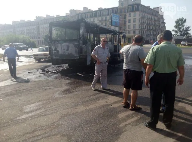 На щастя у салоні пасажирів не було, не постраждав і водій. Він встиг вистрибнути з автобуса, повідомляє 048.ua.