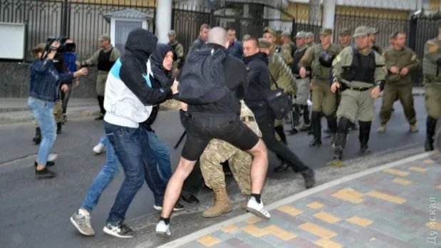Нагадаємо, вранці 18 вересня в Одесі під Генеральним консульством РФ зав'язалась бійка, поліція затримала кількох людей. Зокрема, поліцейські затримали главу одеського відділення "ПС" Сергія Стерненка.