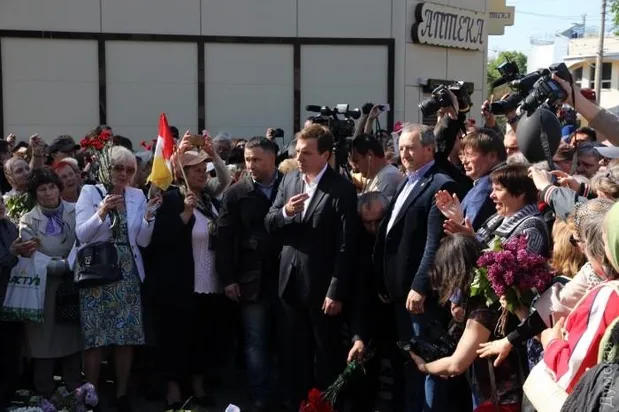 Місцеве видання "Думская" пише, що політик не пробував прорватись у закриту частину площі, а просто поклав квіти у загальну купу.