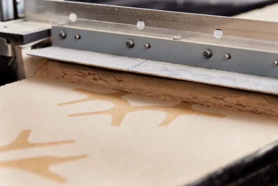 Система працює подібно до струменевого принтера – вона розбризкує в'яжучий засіб на шар тирси, внаслідок чого утворюється твердий цілісний матеріал. Після того, як процес завершився, виріб можна відшліфувати та обробити, як і звичайне дерево.
