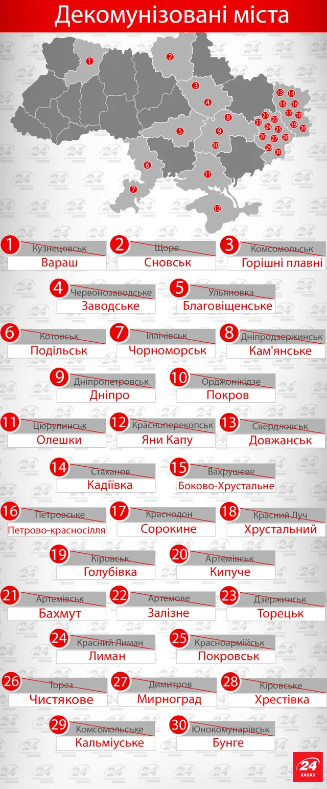 Перечень декоммунизованных украинских городов (для увеличения изображения клацните по нему):