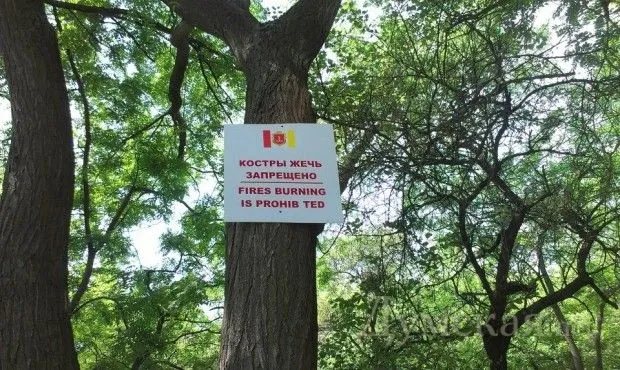 Fires burning is prohib ted - "Разжигание костров запрещено". В слове "prohib ted" вместо пробела надо поставить букву "і".