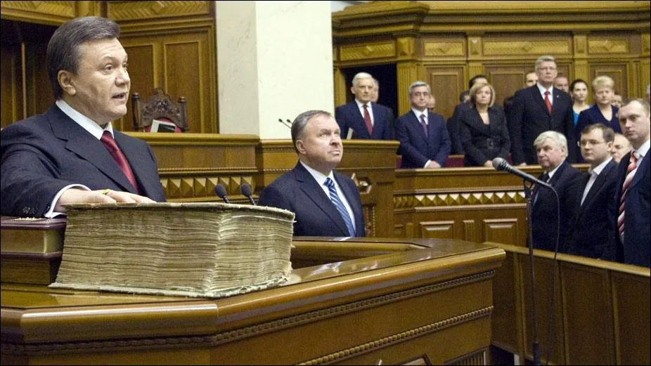 У него было почти 49% поддержки, а это более чем на 3% больше чем у Юлии Тимошенко. 25 февраля регионала уже ждала инаугурация. Ничего особо нового не планировали – торжества в Верховной Раде, присяга на Пересопницком Евангелии и Конституции. Церемонию проигнорировали Виктор Ющенко и Юлия Тимошенко. И гостей из-за рубежа было мало. Самое интересное на инаугурации – то, что сопровождает Виктора Януковича по жизни – казусы.
