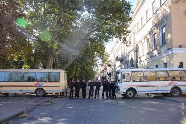 С самого утра в городе был перекрыт Приморский бульвар, десятки правоохранителей и спецтехники охраняли территорию.