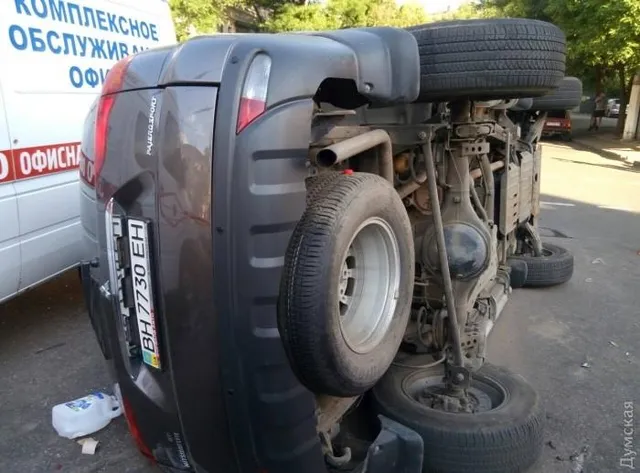 Во время столкновения Mitsubishi Pajero зацепил Mercedes Sprinter и перевернулся.
