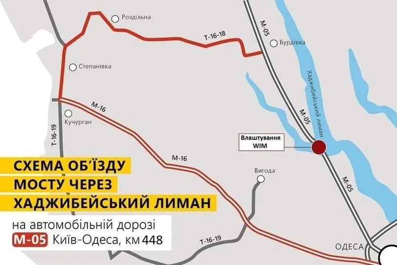 С 21:00 21 декабря до 5:00 22 декабря на мосту через Хаджибейский лиман, расположенный на автомобильной дороге М-05 Киев – Одесса, будет закрыто движение для всех видов транспорта,