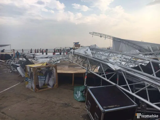Причиной обвала стал шторм, который внезапно обрушился на побережье, где проходит фестиваль, передает Громадьске.