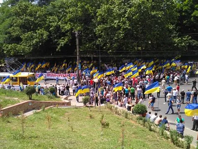 С самого утра к стенам гостиницы отели Gagarinn, где проходило мероприятие, начали сходиться одесситы, недовольные политикой городского головы и общей ситуацией в городе Одесса. К полудню на улице Генуэзской собралось 7 тысяч горожан, которые требуют немедленной отставки Геннадия Труханова, пишут СМИ.