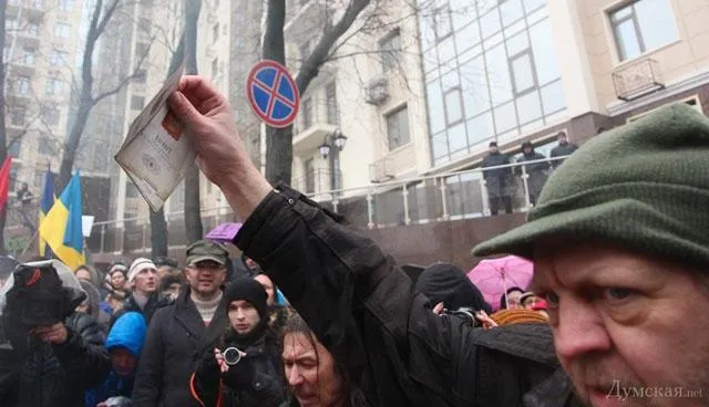 Один из участников митинга — гражданин России — сжег возле консульства свой российский паспорт.