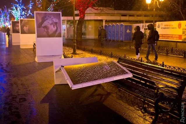 Заметим, что вандалы уничтожили именно один из стендов с украинскими военными.