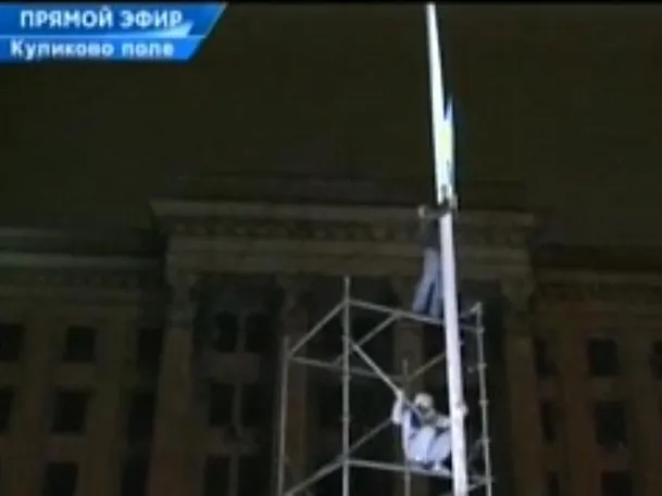 Во время митинга под Одесским городским управлением милиции правоохранители заверили митингующих, что российский "триколор" в течение 15-ти минут будет снят. Впрочем, часть активистов не поверили на слово и отправились на Куликово поле.