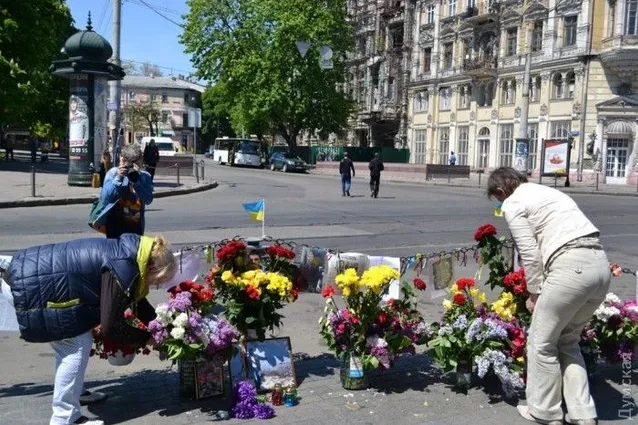 Как информирует одесское издание "Думская", на углу улицы Дерибасовской и Преображенской, возле Соборной площади почтили память погибших проукраинских активистов Игоря Иванова и Андрея Бирюкова, которых 2 мая 2014 года застрелили пророссийские молодчики.