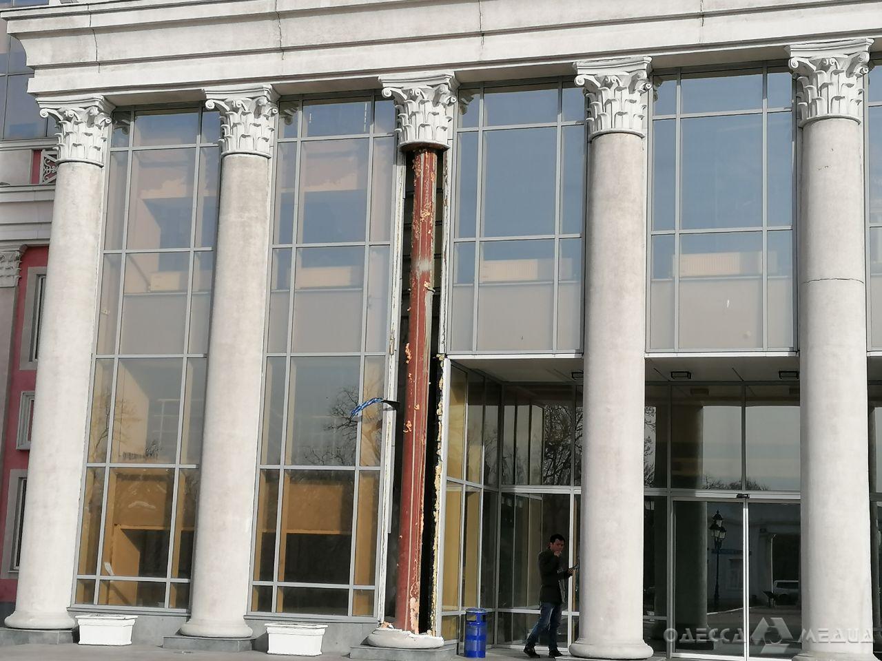 Пострадал также футбольный стадион "Черноморец", на котором выступает одноименная команда. Из-за ветров, которые достигают 56 км/ч, сорвало обшивку колонны.