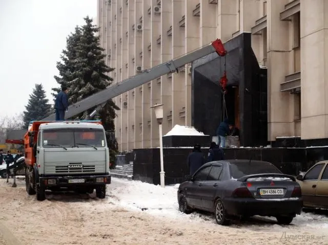 Как сообщает Думская.net, сейчас рабочие устанавливают у входов в админздание на проспекте Шевченко бетонные блоки.