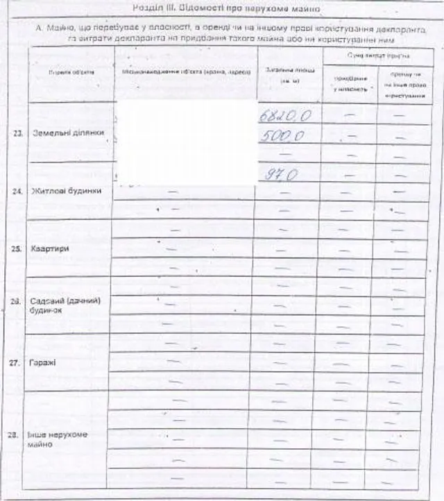 У ній зазначено, що Саакашвілі має дві земельні ділянки (площею 6820 і 500 кв. метрів відповідно) та будинок (97 квадратних метрів).