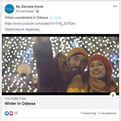 За 60 тисяч гривень вони опублікували відео "Зима в Одесі" на сторінці міжнародної організації "Дунайський центр впливу". На цей час ролик набрав 16 вподобань.