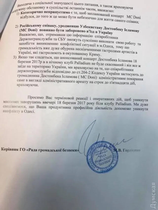 "Репер MC Doni, він же Достонбек, не буде виступати в "Палладіумі", не через громадянський арешт і відправку у СІЗО і потім суд і 15 діб каторжних робіт, а через те, що йому не дадуть перетнути кордон з Україною", – пише Гордієнко.