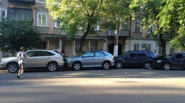 Як повідомили очевидці на "Одеському форумі", водій позашляховика раптово загальмував і машини, які їхали за ним в попутному напрямку, не встигли відреагувати.