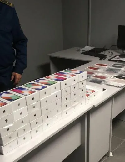 "Під час оформлення пасажирів рейсом "Стамбул–Одеса" у громадянина України в сумці було виявлено мобільні телефони Apple iPhone X у кількості 43 штук та 25 чохлів до них", – йдеться у повідомленні.