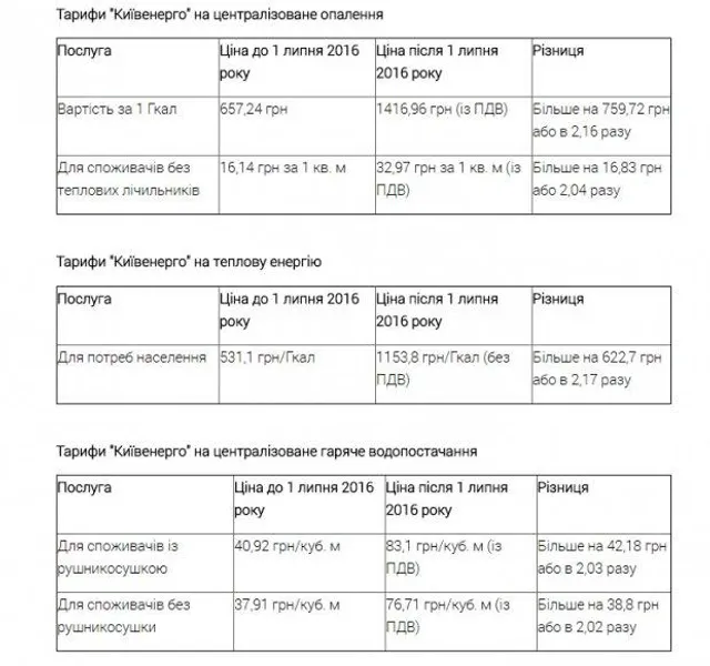 Тарифи зросли через встановлення єдиної ціни на газ для населення і підприємств теплокомуненерго на рівні 6,8 тисяч гривень за тисячу кубометрів.