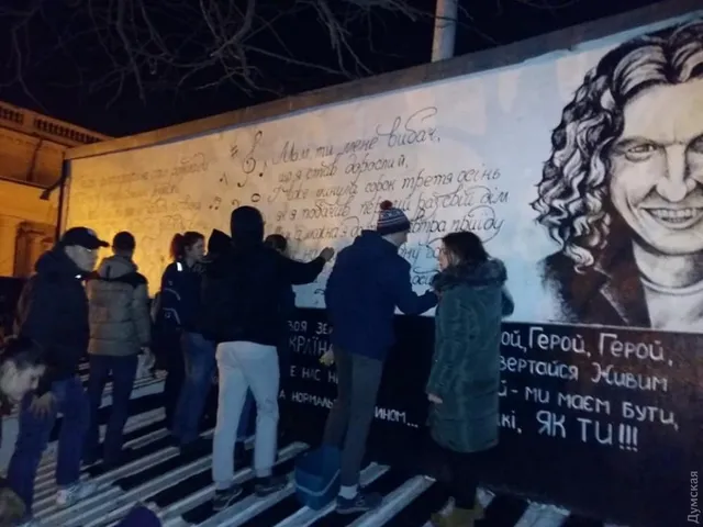 Зі слів очевидців, інцидент стався вночі. Але небайдужі одесити оперативно відмили стіну, присвячену лідеру гурту "Скрябін" Андрію Кузьменку.