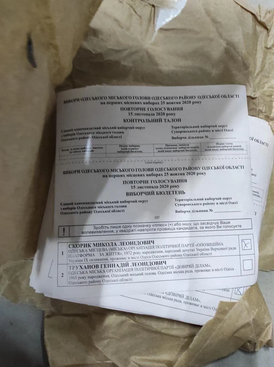 "Оперативники спецслужби провели обшук в офісному приміщенні в Одесі, яке використовувалося як "громадська приймальня" одного з громадсько-політичних діячів. Правоохоронці виявили сотні бюлетенів для голосування, ідентичних за формою та змістом оригінальним документам суворої виборчої звітності", – сказано в повідомленні.