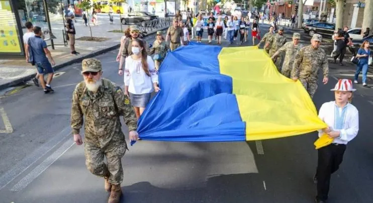 Святкову ходу центральним проспектом влаштували у Запоріжжі. Містяни зґуртувалися через соцмережі. Прийшло більше, ніж тисяча людей. Попереду колони крокували члени сімей загиблих воїнів та захисники України.
