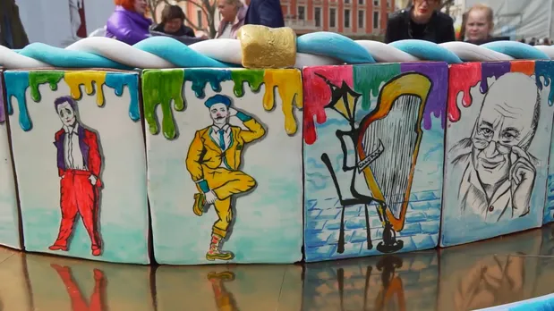 По периметру солодкого "гіганта" – десятки пряників з портретами відомих місцевих гумористів.