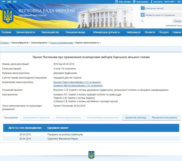 На сайті Ради зазначено, що проект постанови №4530 внесли у парламент 26 квітня, проте текст документу ще повністю не оприлюднений.