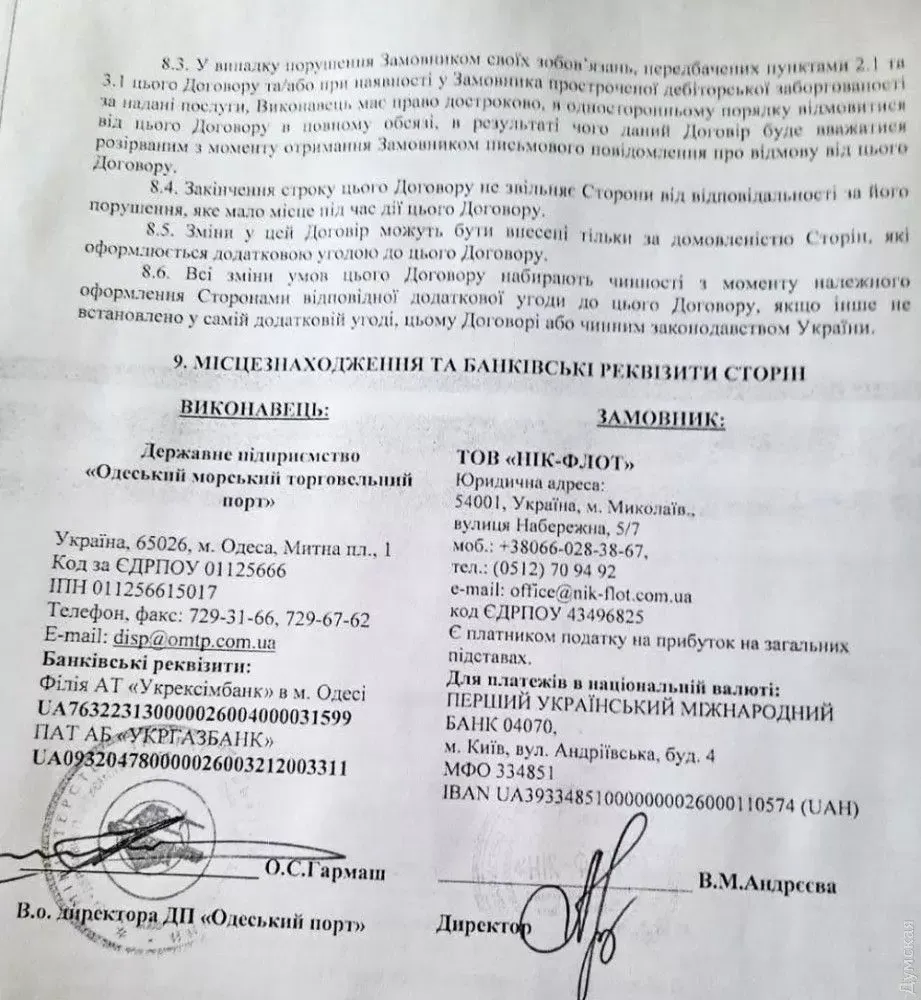 В якості доказу інсайдери журналістів навели конкретний приклад: лише через день після відсторонення Олексія Мясковського, 3 найякісніших і ходових буксири Одеського порту – "Патріот", "Новатор" і "Ударник" – терміново, без тендера та навіть мінімальної спроби дотриматися законних процедур – оформлені для передачі в оренду компаніям, що афільовані з буксирного "прокладкою" "Нік-флот". За даними видання "Думская", держбуксири віддали за вельми невеликі гроші, які не дозволять оплатити навіть технічні регламентні роботи. Вночі з 21 на 22 січня "Ударник", "Новатор" і "Патріот" вирушили до миколаївського порту та вже приступили до роботи.