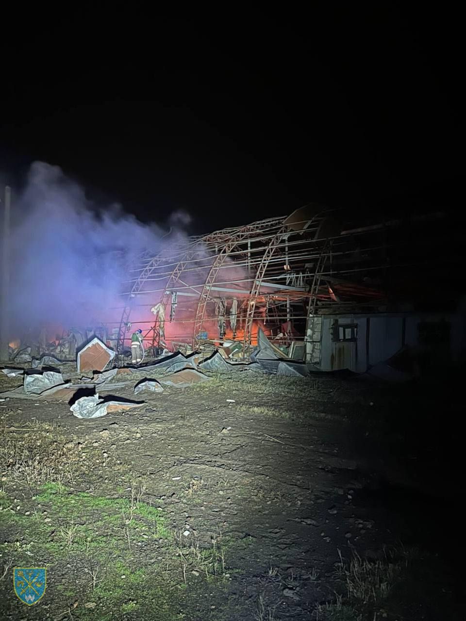 Так, в Одеській області один з дронів-камікадзе впав на приватний будинок і вибухнув. Вибуховою хвилею пошкоджено будинки навколо, ангар з майном приватної спортивної установи. Виникла масштабна пожежа, яку вогнеборці оперативно ліквідували.