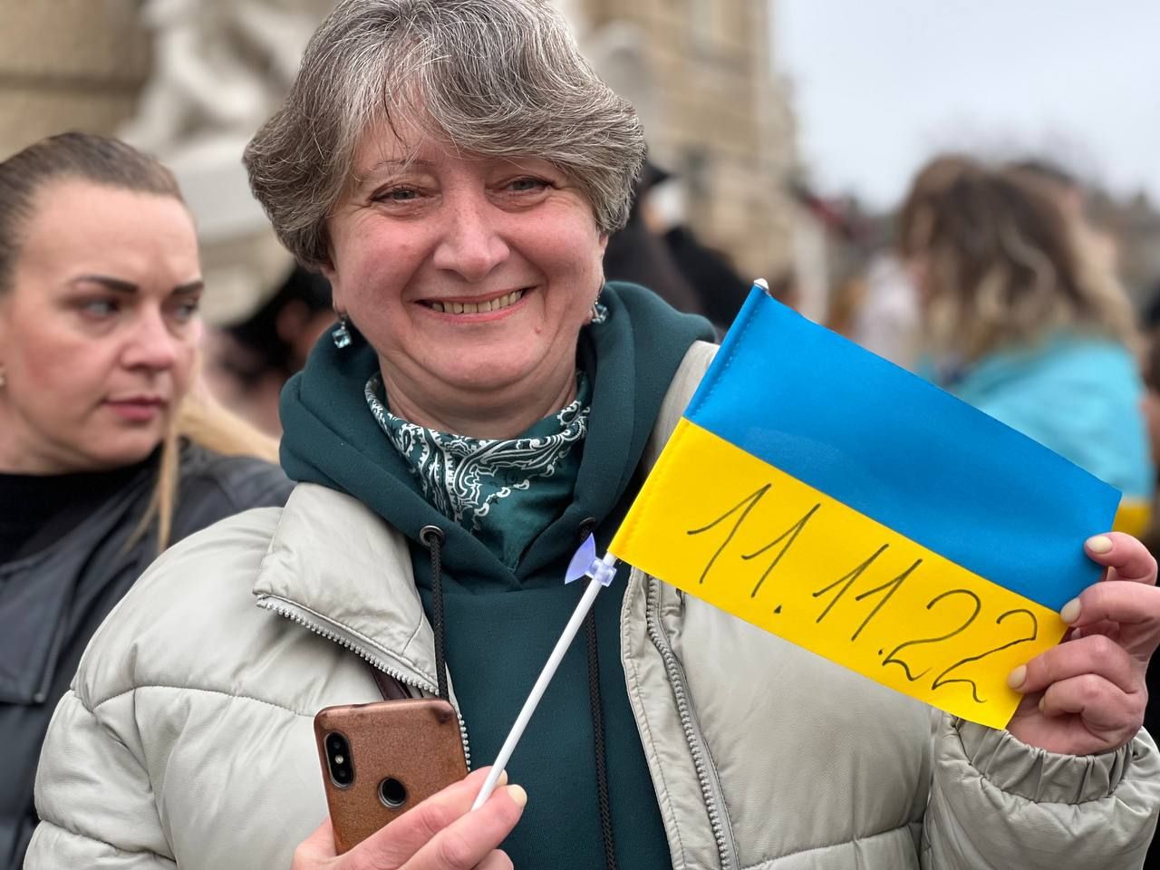 Херсонці неймовірно щасливі, що їхнє рідне місто тепер вільне. Порадіти прийшли й мешканці області, у чиїх населених пунктах наразі ще висить російський триколор. Адже тепер вони точно знають, що невдовзі вся Херсонщина буде вільна. Так, в однієї жінки на акції був плакат з написом "Олешки – наступні".