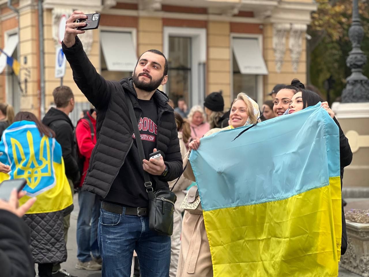 Автомобілі, які проїжджали повз, сигналили херсонцям. На фото та відео з місця події помітно, що всі присутні – дуже щасливі, а в центрі Одеси панує атмосфера радості.